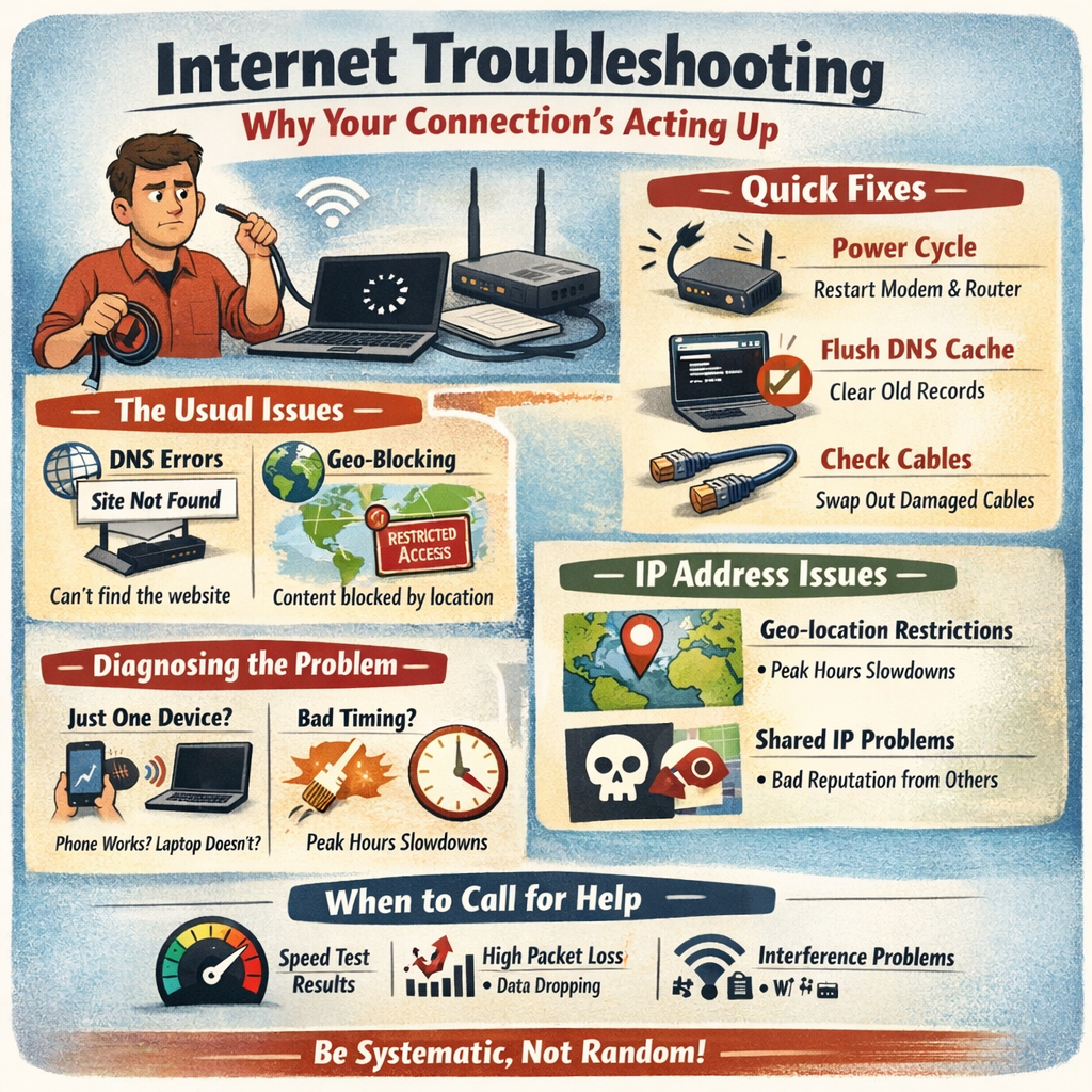 Your connection passes through a lot of equipment: your device, router, modem, your ISP’s infrastructure, then servers you’ll never see. A problem anywhere in that chain and you’re stuck staring at a loading spinner.